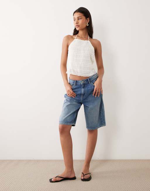 JDY - Bermuda en jean à taille mi-haute - Bleu moyen