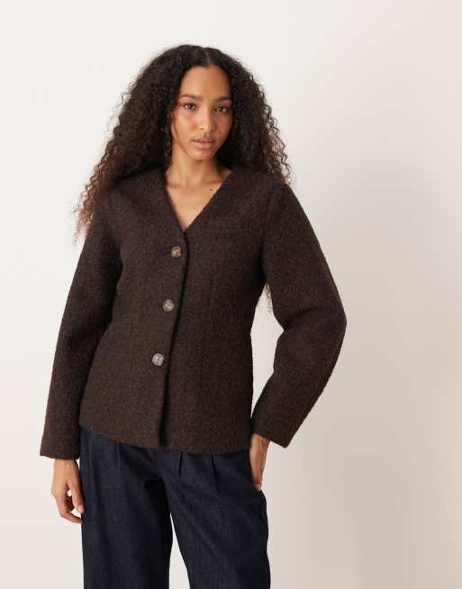 JDY - Blazer ajusté en maille bouclée - Marron chocolat