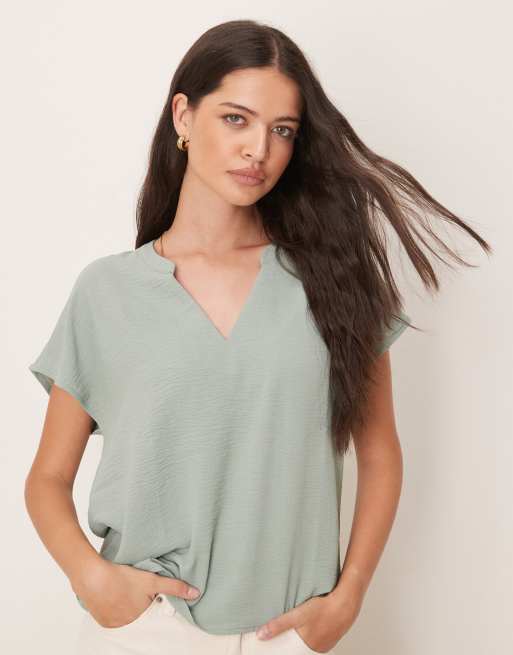 JDY - Blouse à col en V et manches courtes - Vert sauge