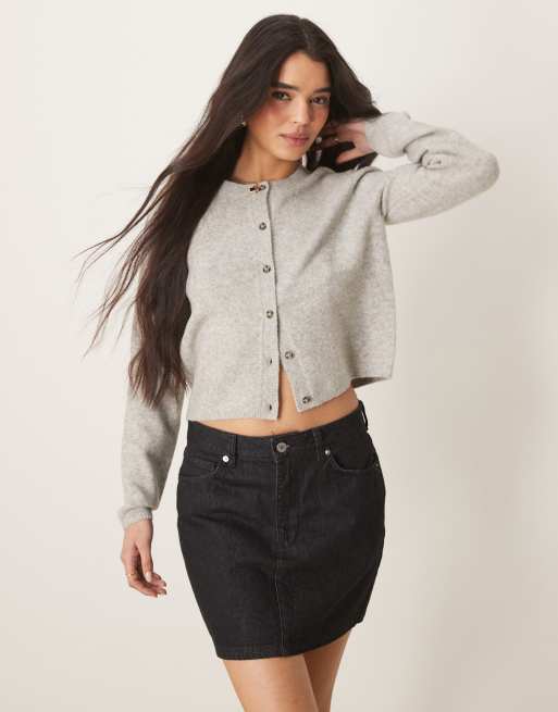 JDY - Gilet ras de cou en laine mélangée - Gris clair