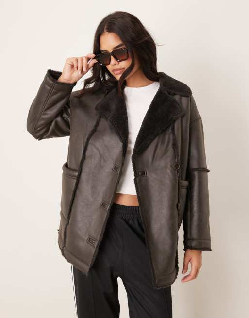 JDY - Manteau en imitation peau de mouton - Marron chocolat