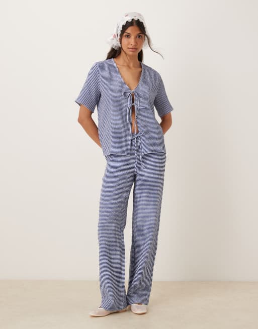 JDY - Pantalon d'ensemble ample en crépon à carreaux vichy - Bleu
