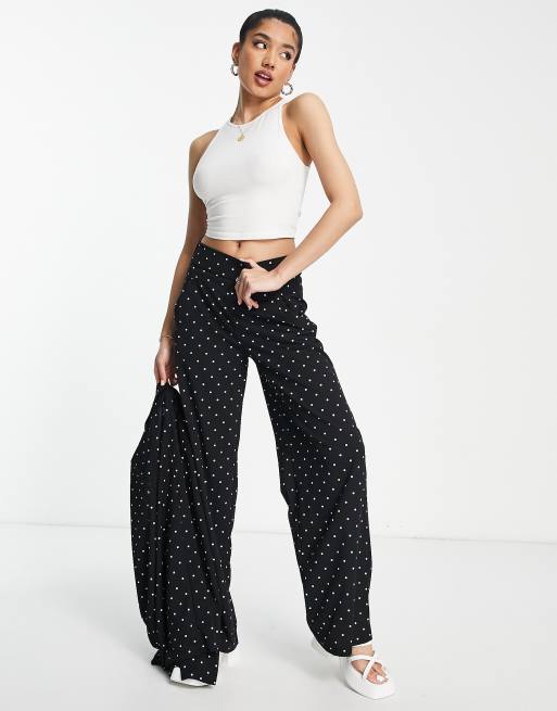 JDY - Pantalon d'ensemble large habillé à pois - Noir