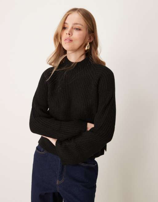 JDY - Pull fendu sur le côté à col montant - Noir