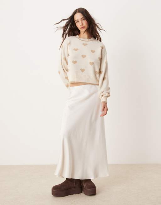 JDY - Pull ras de cou en maille à motif cœurs - Beige