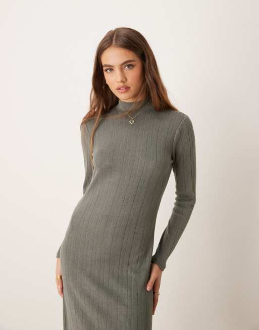JDY - Robe côtelée mi-longue à col montant et manches longues - Gris