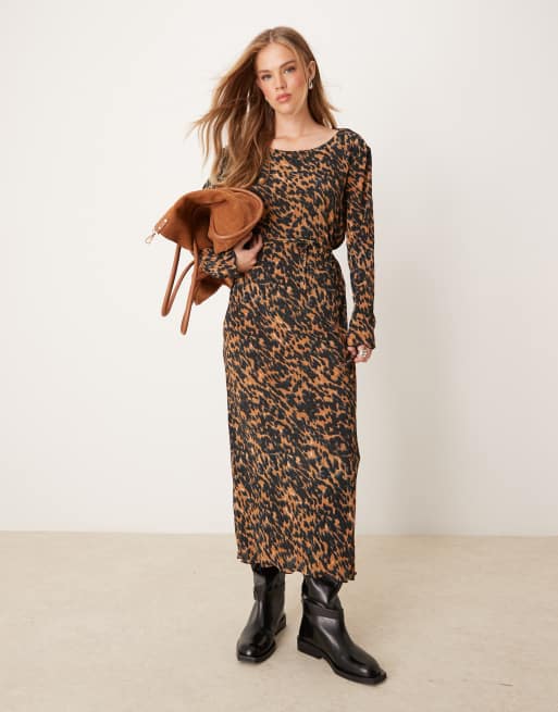 JDY - Robe mi-longue plissée avec ceinture à imprimé léopard
