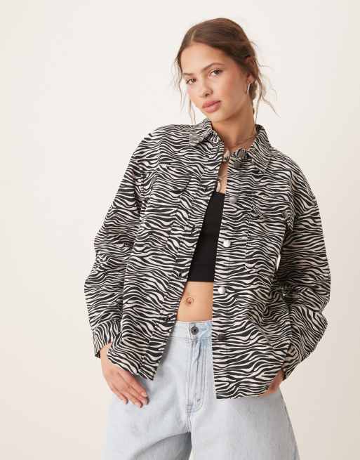 JDY - Surchemise en sergé de coton à imprimé zébrures