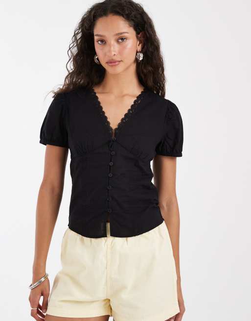 JJXX - Chemise ajustée en popeline à manches courtes - Noir