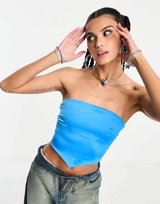 JJXX - Crop top satiné à ourlet foulard - Bleu vif