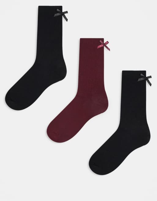 JJXX - Lot de 3 paires de chaussettes à détail nœud - Bordeaux varié