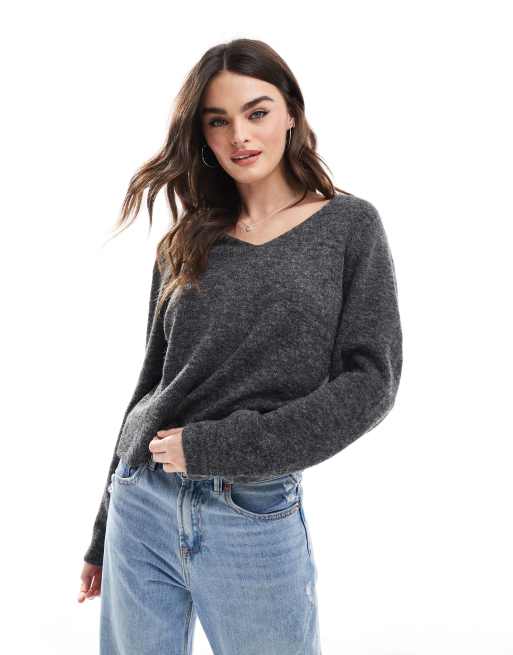 JJXX - Pull à col V échancré - Gris foncé chiné