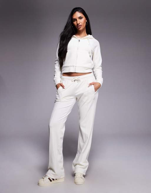 Juicy Couture - Pantalon de jogging d'ensemble en velours à logo à strass - Blanc