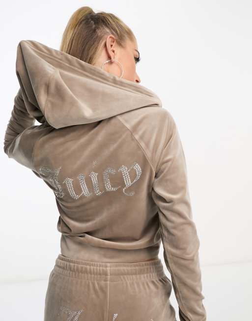 Juicy Couture - Sweat à capuche d'ensemble en velours à fermeture éclair - Marron