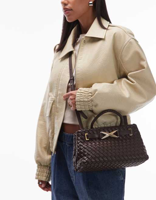 JW PEI - Elora - Cabas tressé avec poignée supérieure et détail en métal - Marron foncé