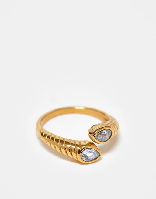 Exclusivité - Kaiia - Bague enveloppante en acier inoxydable ornée de strass - Doré