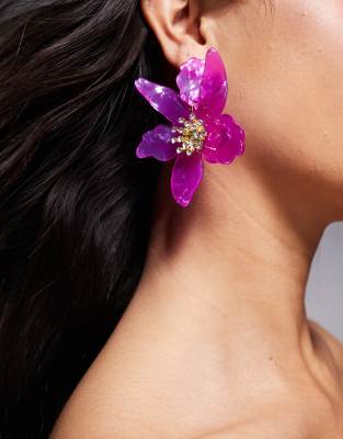 Exclusivité - Kaiia - Boucles d'oreilles avec fleur oversize en acrylique avec strass - Violet