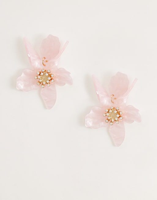 Exclusivité - Kaiia - Boucles d'oreilles pendantes avec fleurs en résine à strass - Rose