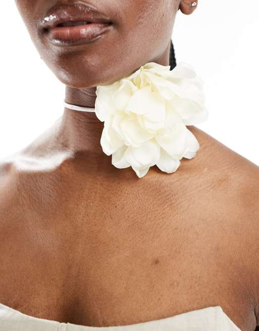Exclusivité - Kaiia - Collier ras de cou à fleur - Blanc