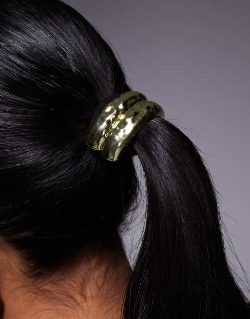 Exclusivité - Kaiia - Élastique à cheveux avec détails en métal effet martelé - Doré