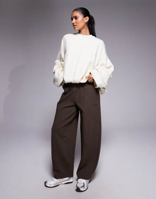 Exclusivité - Kaiia - Pantalon de jogging ample en coton majoritaire à surpiqûres - Marron chocolat