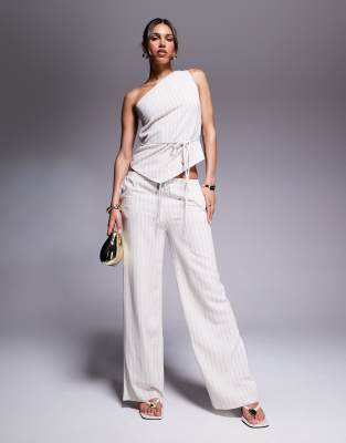 Exclusivité - Kaiia - Pantalon large d'ensemble aspect lin à rayures fines - Beige