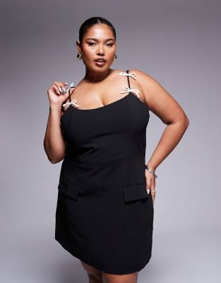 Exclusivité - Kaiia Plus - Robe courte ajustée à bretelles et nœud contrastant - Noir