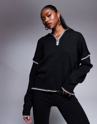 Exclusivité - Kaiia - Pull d'ensemble oversize à fermeture éclair et coutures contrastantes - Noir