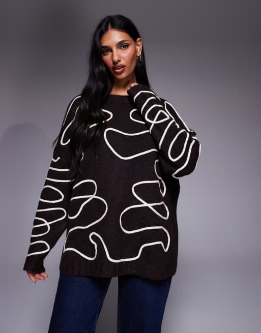 Exclusivité - Kaiia - Pull ras de cou à motif cousu abstrait - Crème