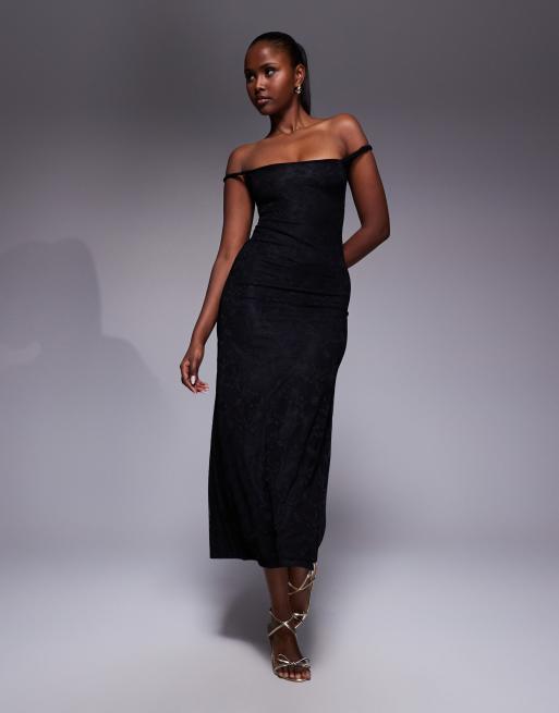 Exclusivité - Kaiia - Robe longueur mollet en tissu double épaisseur moulant avec épaules dénudées et détail torsadé - Noir