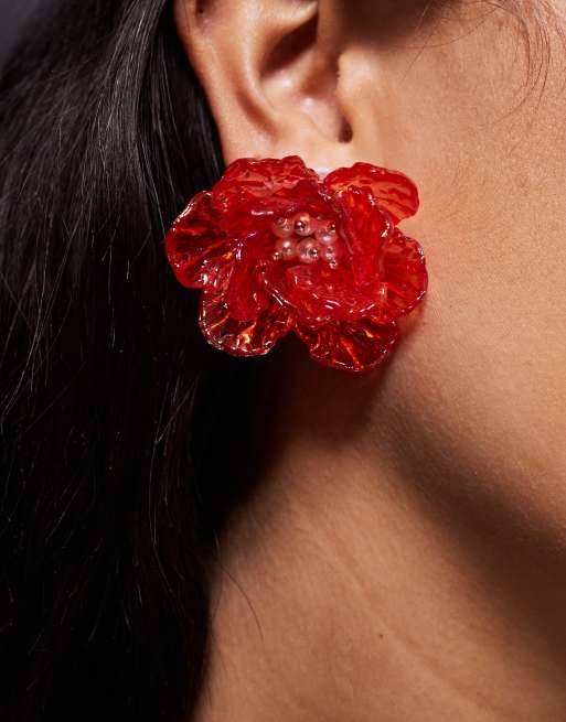 Kaiia - Boucles d'oreilles fleurs oversize en résine - Rouge