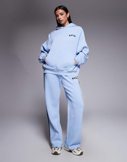 Kaiia - Ensemble à logo brodé avec pantalon de jogging ample et sweat à capuche oversize - Bleu pastel