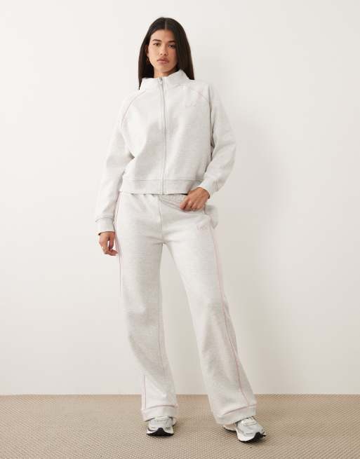Kaiia - Ensemble avec pantalon de jogging ample et veste molletonnée courte zippée à broderie logo - Gris chiné