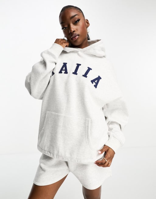 Kaiia - Ensemble avec sweat à capuche oversize avec logo et short en molleton - Gris chiné