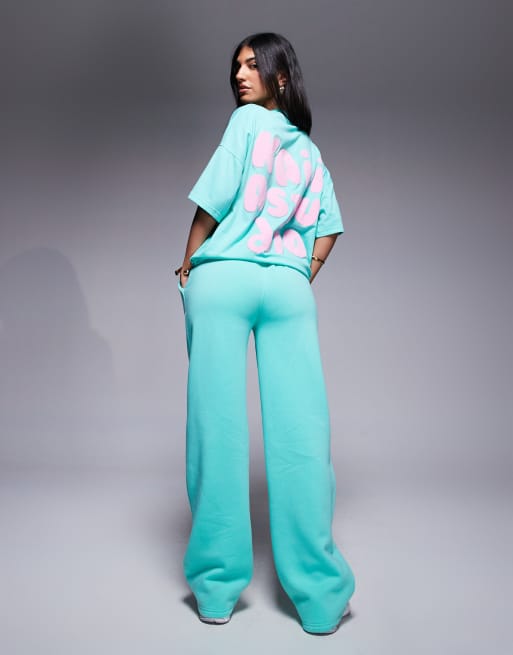 Kaiia - Ensemble avec t-shirt oversize à logo en relief, sweat à capuche et pantalon de jogging - Aqua et rose pastel