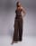 Kaiia - Ensemble en aspect lin avec pantalon et veston à encolure carrée - Marron chocolat