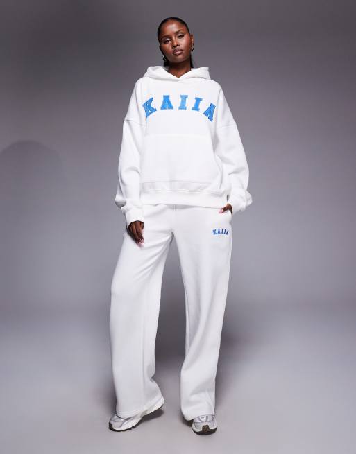 Kaiia - Ensemble en coton majoritaire à broderie logo avec pantalon de jogging ample et sweat à capuche oversize - Blanc/bleu