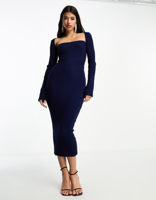 Kaiia - Ensemble robe bandeau mi-longue et boléro en maille - Bleu