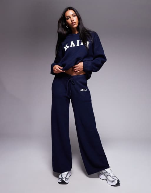 Kaiia - Pantalon d'ensemble ample en maille avec broderie logo - Bleu marine