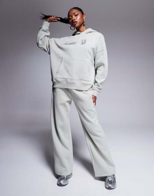 Kaiia - Studio - Ensemble avec pantalon de jogging ample et sweat à capuche oversize à logo - Vert matcha