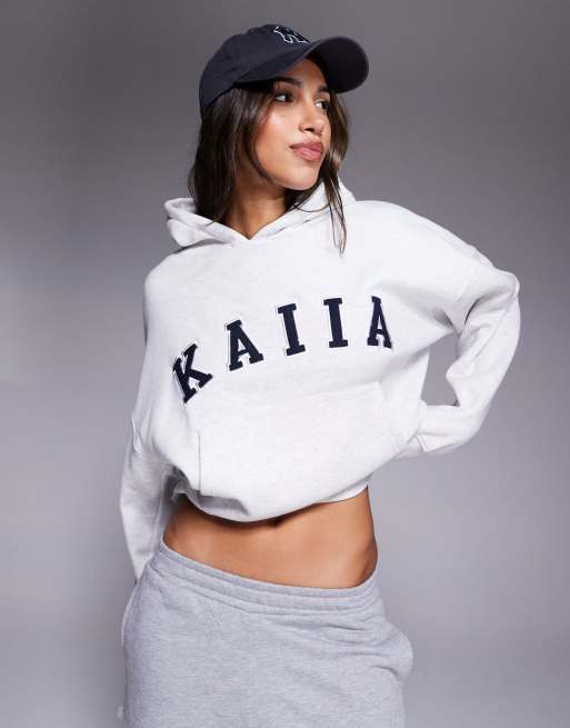Kaiia - Sweat à capuche oversize d'ensemble en coton mélangé avec logo - Gris chiné