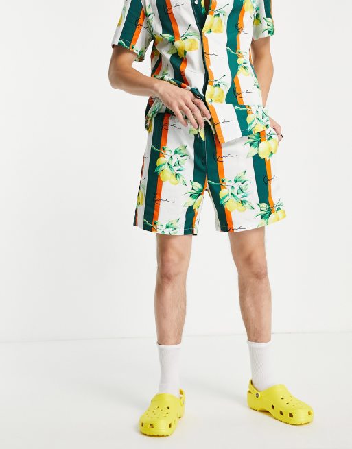 Karl Kani - Short style club de vacances avec petit logo signature - Blanc