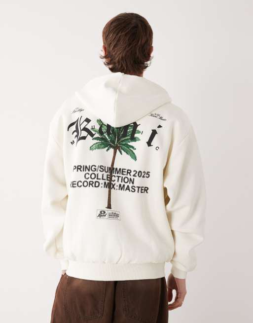 Karl Kani - Sweat à capuche oversize à fermeture éclair et imprimé palmier au dos - Blanc cassé
