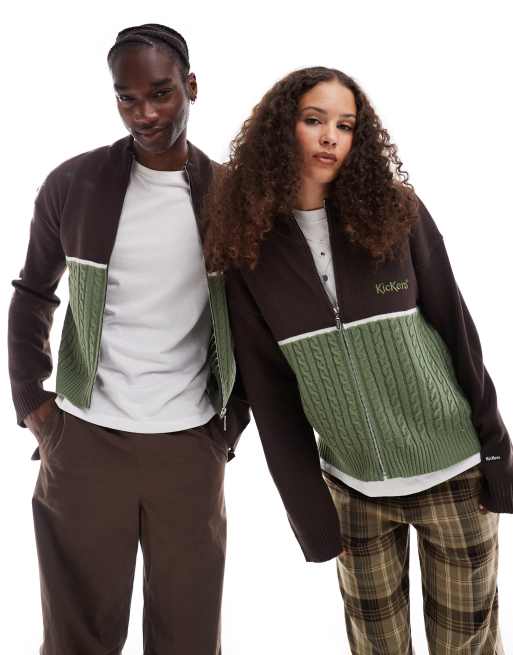 Kickers - Gilet zippé à col cheminée style années 90 en maille - Marron/vert