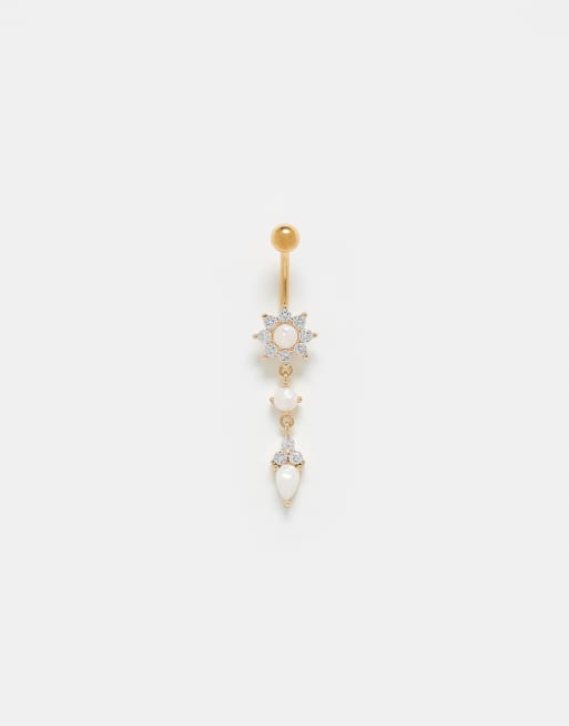 Kingsley Ryan - Barre de nombril avec breloque goutte d'eau et pierre d'opale - Doré