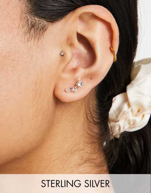 Kingsley Ryan - Boucles d'oreilles montantes en argent massif avec pierres rondes