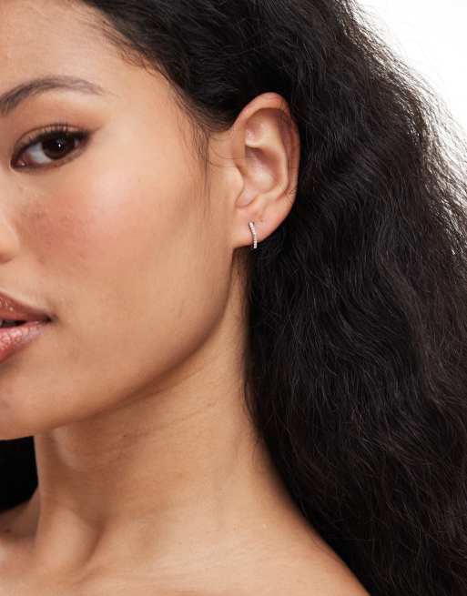 Kingsley Ryan - Mini-créoles hexagonales 8 mm à cristaux en argent massif