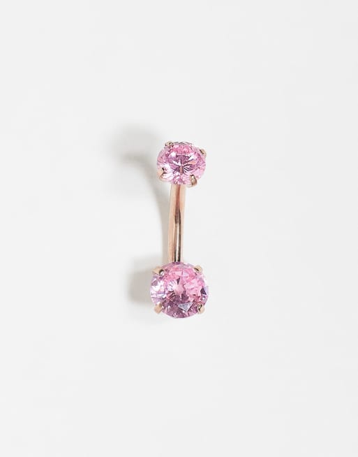 Kingsley Ryan - Piercing nombril en acier plaqué or avec cristaux roses