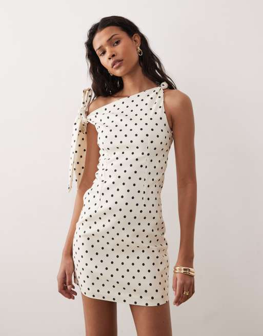 Kiss The Sky - Robe courte à pois et épaules dénudées - Blanc