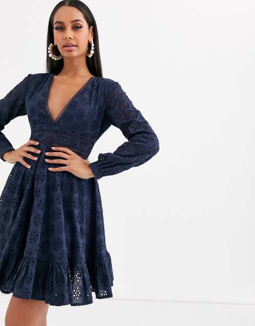Koco & K - Robe patineuse à ourlet volanté - Bleu marine